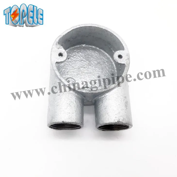 TOPELE býður upp á BS sveigjanlega Tee Way hringlaga kassa sem eru uppbyggðir í kassa með hringlaga lögun. Þessi tegund er „Branch Two Way“, hafa í mesta lagi tvær skautanna sem standa út úr henni. Ýmsar stærðir sem sveigjanlegu hringlaga kassarnir eru fáanlegir í eru 20mm, 25mm. Með fyrirvara um sérsniðna hönnun eru sveigjanlegu hringlaga kassarnir venjulega fáanlegir í svörtu heitu rafhúðuðu og galvaniseruðu áferð.